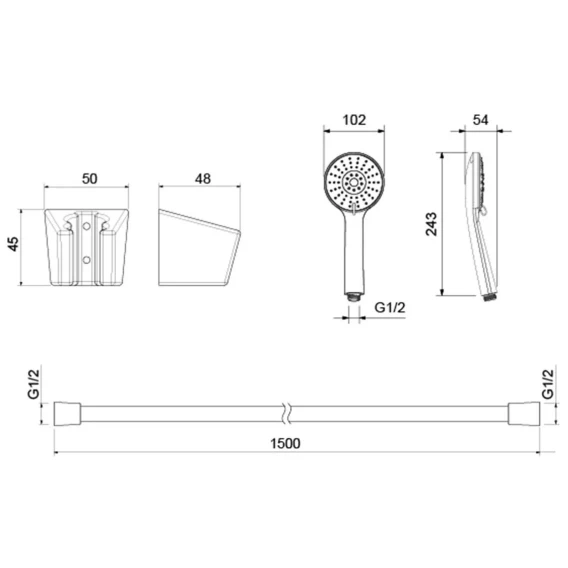 Душевой шланг, Душевая лейка, Держатель для душевой лейки