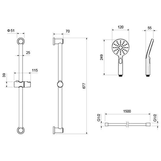 Крепление, Душевой шланг, Душевая лейка, Держатель для душевой лейки, Штанга душевая