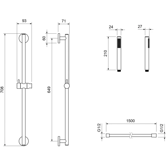 Крепление, Душевой шланг, Душевая лейка, Держатель для душевой лейки, Штанга душевая
