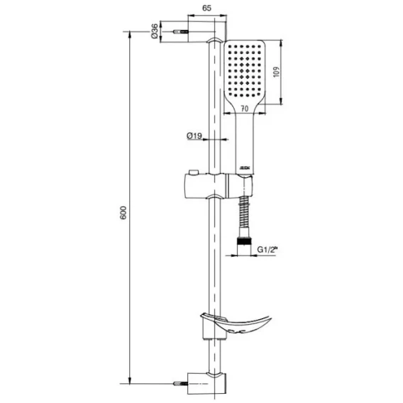 Крепление, Душевой шланг, Душевая лейка, Держатель для душевой лейки, Мыльница, Штанга душевая