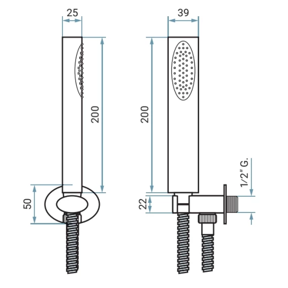Душевой шланг, Душевая лейка, Подключение для душевого шланга с держателем