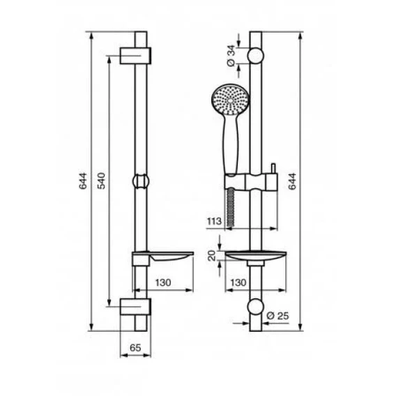 Крепление, Душевой шланг, Душевая лейка, Держатель для душевой лейки, Мыльница, Штанга душевая