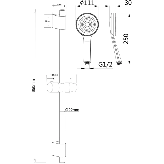 Крепление, Душевой шланг, Душевая лейка, Держатель для душевой лейки, Штанга душевая