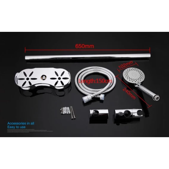 Крепление, Душевой шланг, Душевая лейка, Держатель для душевой лейки, Полочка, Штанга душевая