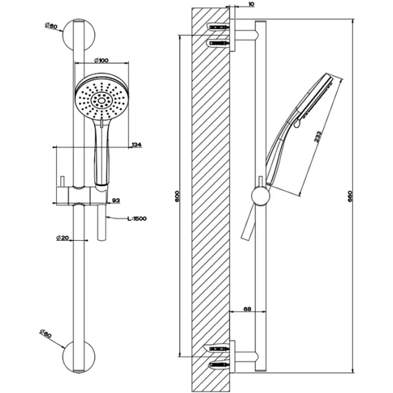 Крепление, Душевой шланг, Душевая лейка, Держатель для душевой лейки, Штанга душевая