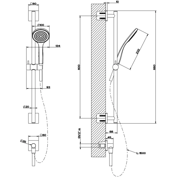 Крепление, Душевой шланг, Душевая лейка, Держатель для душевой лейки, Подключение для душевого шланга, Штанга душевая