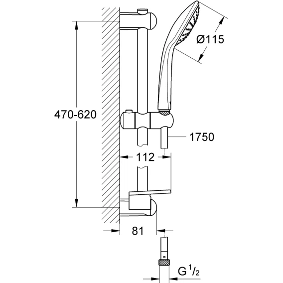 • GROHE FastFixation (регулируемое расстояние между настенными креплениями штанги позволяет использовать для монтажа уже имеющиеся отверстия в стене)