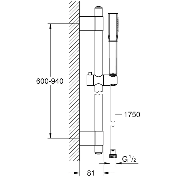 • GROHE FastFixation Plus (регулируемое расстояние между настенными креплениями штанги позволяет использовать для монтажа уже имеющиеся отверстия в стене)
