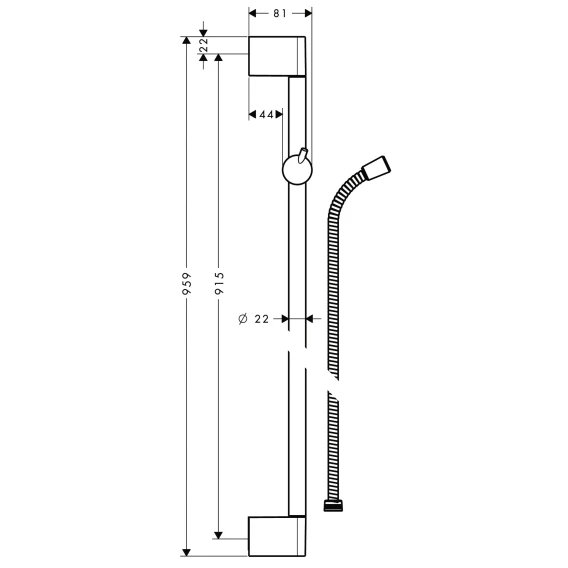 • диаметр душевой штанги: 22 мм