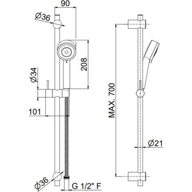 Крепление, Душевой шланг, Душевая лейка, Держатель для душевой лейки, Штанга душевая