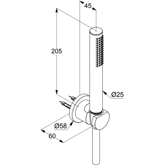 Крепление, Душевой шланг, Душевая лейка, Держатель для душевой лейки