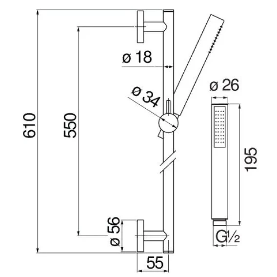 Крепление, Душевой шланг, Душевая лейка, Держатель для душевой лейки, Штанга душевая