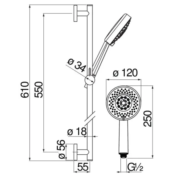 Крепление, Душевой шланг, Душевая лейка, Держатель для душевой лейки, Штанга душевая