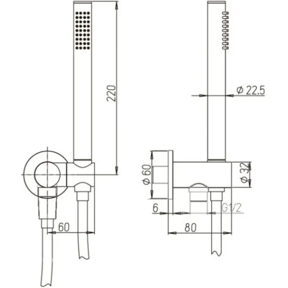 Душевой шланг, Душевая лейка, Подключение для душевого шланга с держателем