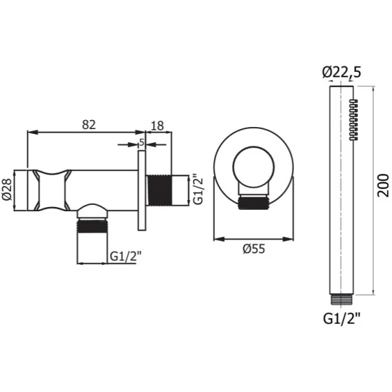 Душевой шланг, Душевая лейка, Подключение для душевого шланга с держателем