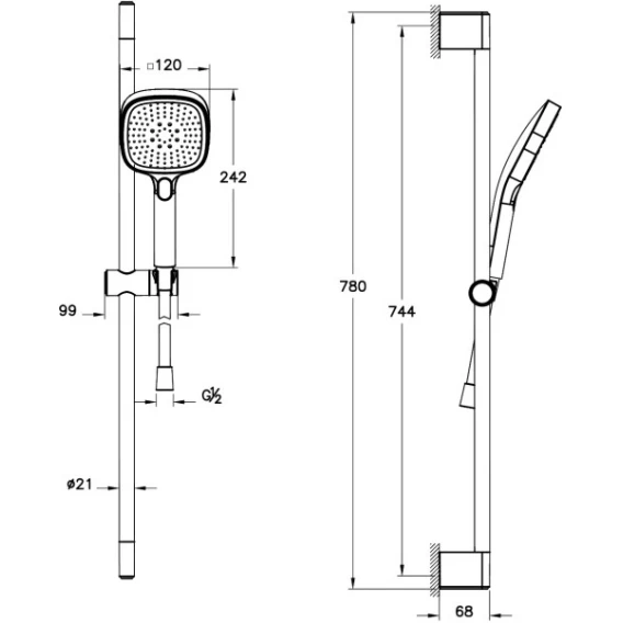 Крепление, Душевой шланг, Душевая лейка, Держатель для душевой лейки, Штанга душевая