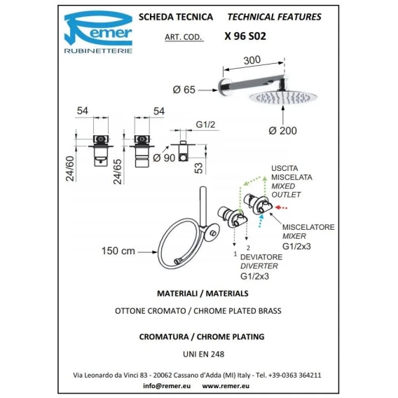 Душевой комплект 200 мм Remer X Style X96S02DO