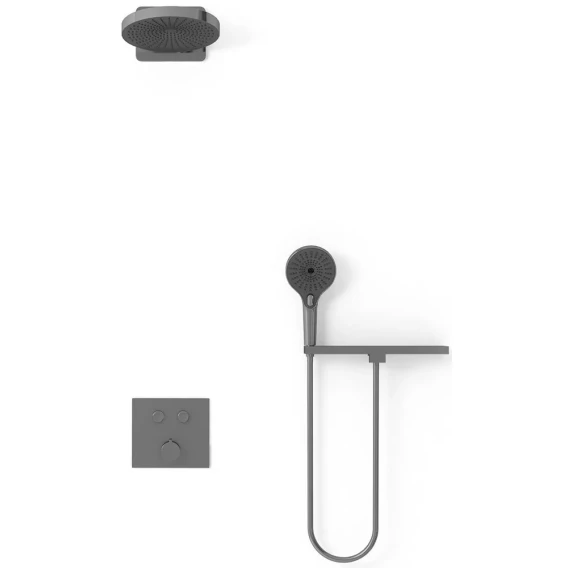 Душевой шланг, Душевая лейка, Подключение для душевого шланга с держателем, Полочка, Верхний душ, Скрытая монтажная часть, Смеситель, Кронштейн