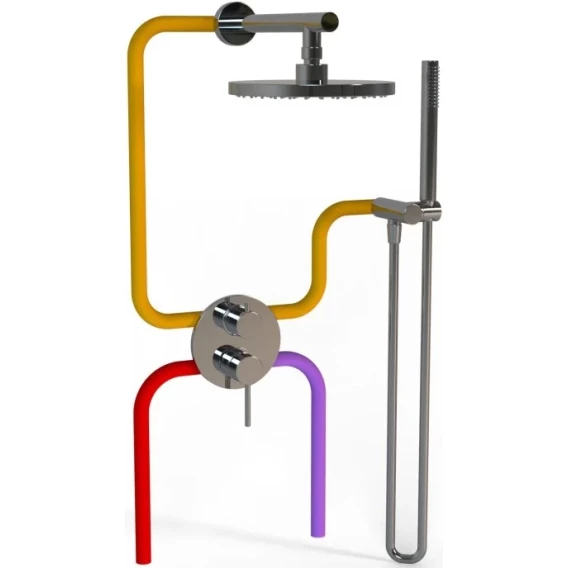 Душевой шланг, Душевая лейка, Подключение для душевого шланга с держателем, Верхний душ, Скрытая монтажная часть, Смеситель, Кронштейн