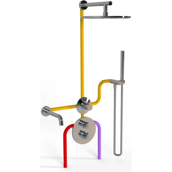 Аэратор, Душевой шланг, Душевая лейка, Подключение для душевого шланга с держателем, Верхний душ, Излив, Скрытая монтажная часть, Кронштейн, Термостат