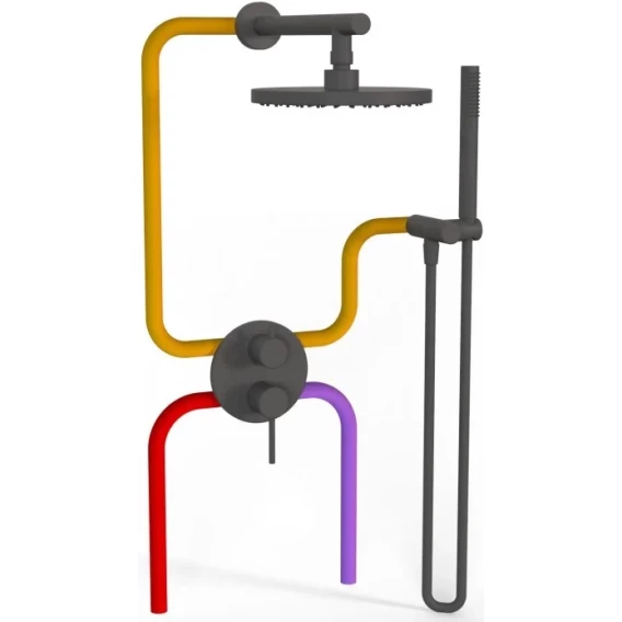 Душевой шланг, Душевая лейка, Подключение для душевого шланга с держателем, Верхний душ, Скрытая монтажная часть, Смеситель, Кронштейн