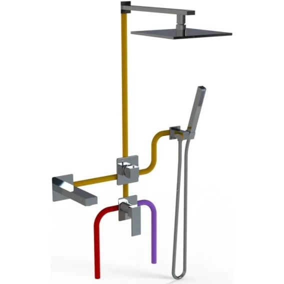 Аэратор, Душевой шланг, Душевая лейка, Подключение для душевого шланга с держателем, Верхний душ, Излив, Скрытая монтажная часть, Смеситель, Кронштейн
