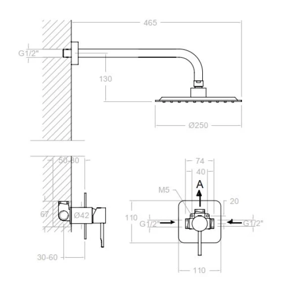 Верхний душ, Скрытая монтажная часть, Кронштейн, Термостат