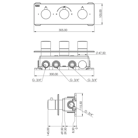Аэратор, Душевой шланг, Душевая лейка, Подключение для душевого шланга с держателем, Верхний душ, Излив, Скрытая монтажная часть, Кронштейн, Термостат