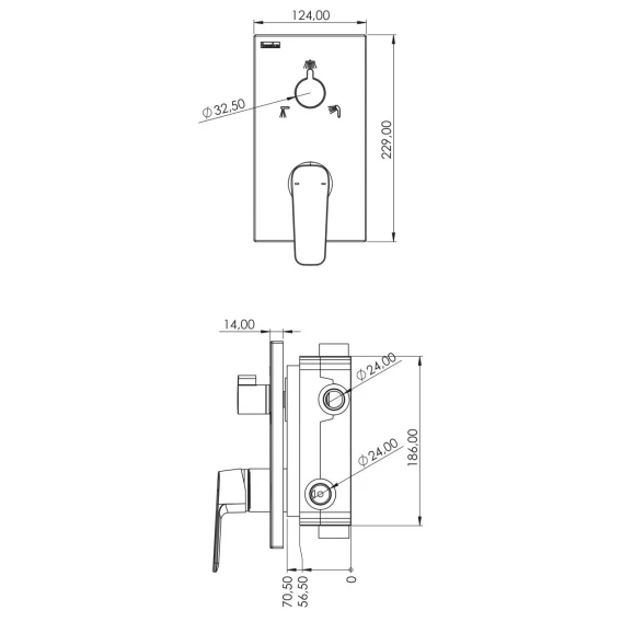 Аэратор, Душевой шланг, Душевая лейка, Подключение для душевого шланга с держателем, Верхний душ, Скрытая монтажная часть, Смеситель, Кронштейн