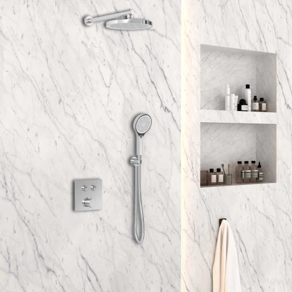 Душевой шланг, Душевая лейка, Подключение для душевого шланга с держателем, Верхний душ, Скрытая монтажная часть, Смеситель, Кронштейн
