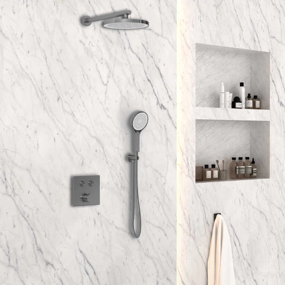 Душевой шланг, Душевая лейка, Подключение для душевого шланга с держателем, Верхний душ, Скрытая монтажная часть, Смеситель, Кронштейн