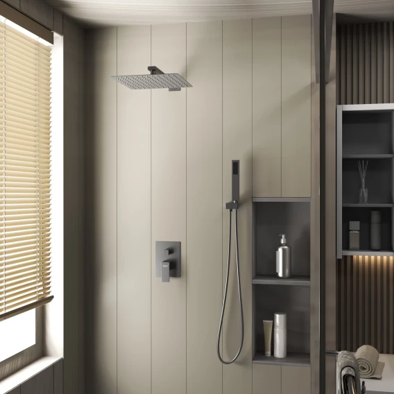 Душевой шланг, Душевая лейка, Подключение для душевого шланга с держателем, Верхний душ, Скрытая монтажная часть, Смеситель, Кронштейн