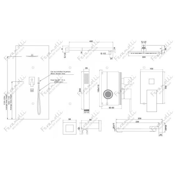 Душевой комплект 300 мм Feramolli Cubo GL711-12