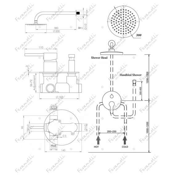 Душевой комплект 300 мм Feramolli Ele GL701-12