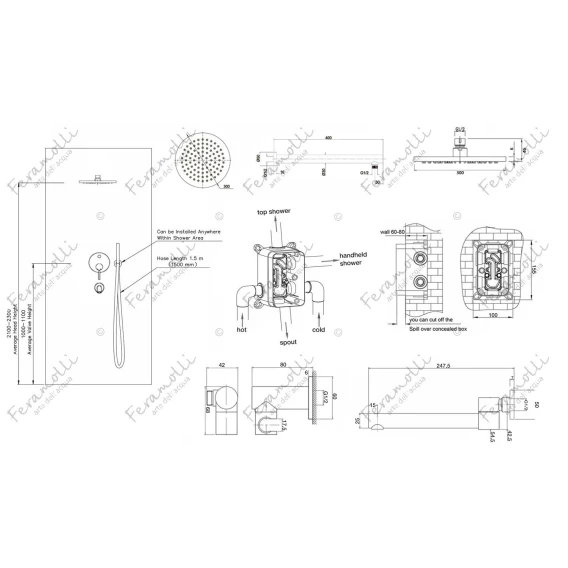 Душевой комплект 300 мм Feramolli Ele GL733-12