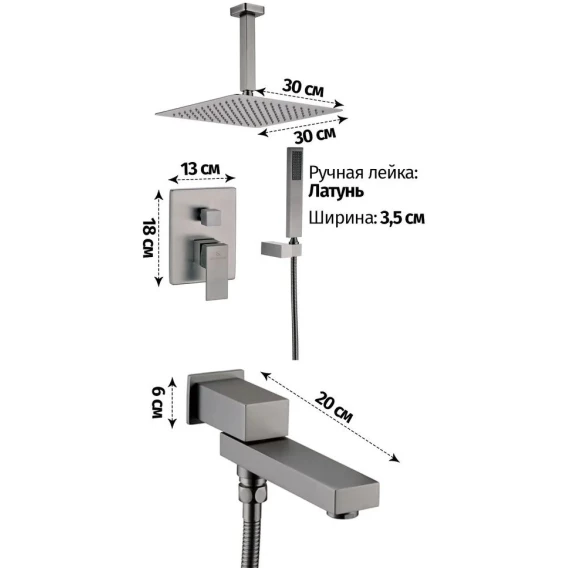 Душевой комплект 300 мм Grocenberg GB5089MG-1