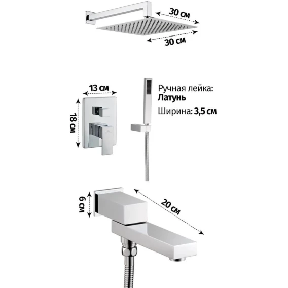 Душевой комплект AQUAme AQM8403CR 300 мм, с термостатом, хром