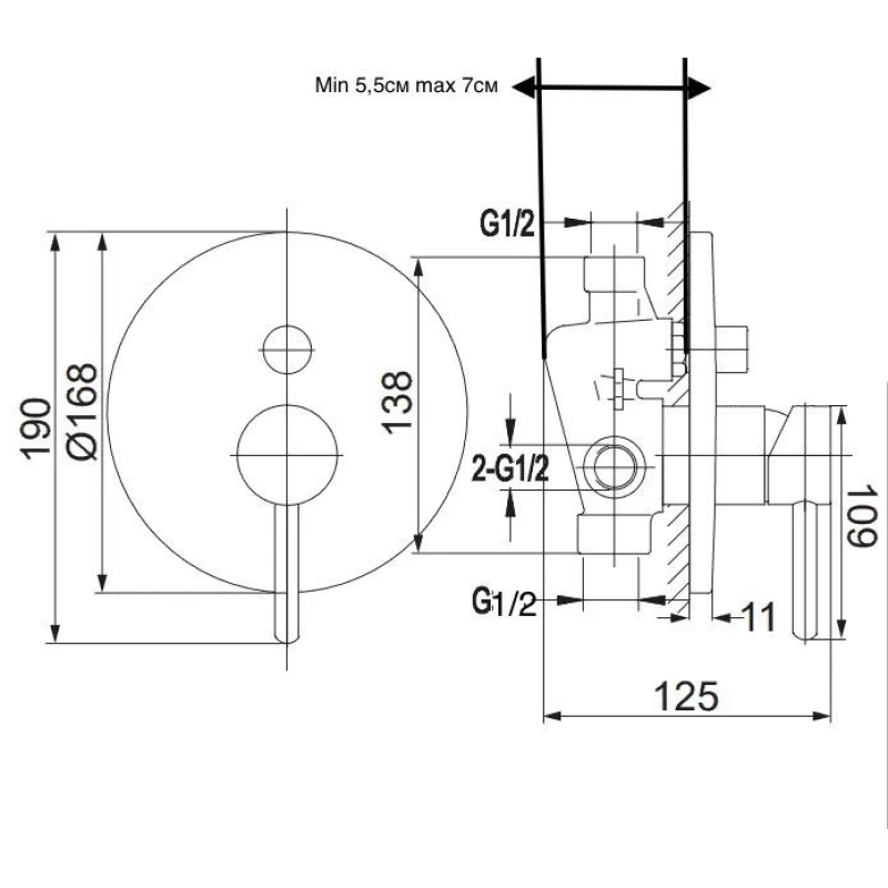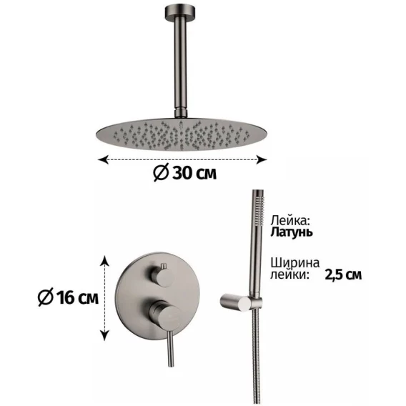 Душевой шланг, Душевая лейка, Подключение для душевого шланга с держателем, Верхний душ, Скрытая монтажная часть, Смеситель, Кронштейн