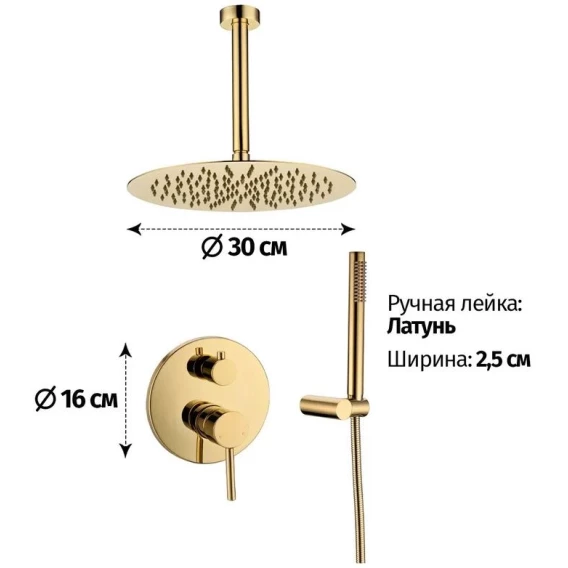 Душевой шланг, Душевая лейка, Подключение для душевого шланга с держателем, Верхний душ, Скрытая монтажная часть, Смеситель, Кронштейн