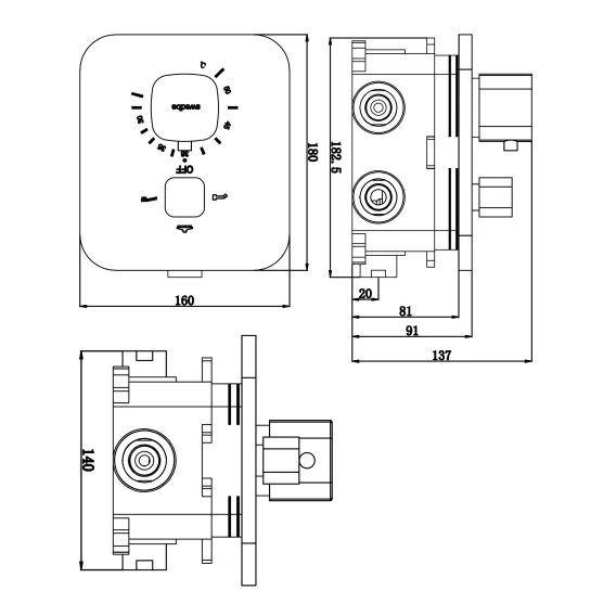 Аэратор, Душевой шланг, Душевая лейка, Держатель для душевой лейки, Подключение для душевого шланга, Верхний душ, Излив, Скрытая монтажная часть, Кронштейн, Мыльница, Штанга душевая, Термостат