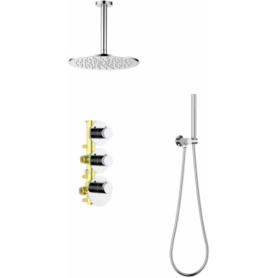 Душевой шланг, Душевая лейка, Подключение для душевого шланга с держателем, Верхний душ, Скрытая монтажная часть, Кронштейн, Термостат