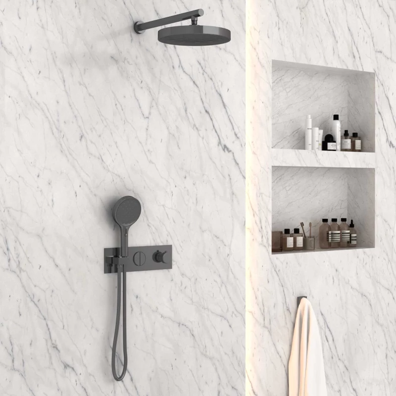 Душевой шланг, Душевая лейка, Подключение для душевого шланга с держателем, Верхний душ, Скрытая монтажная часть, Кронштейн, Термостат