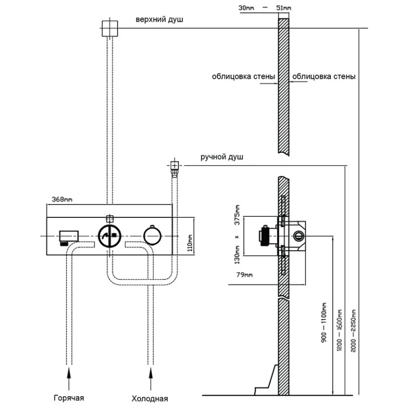 Аэратор, Душевой шланг, Душевая лейка, Подключение для душевого шланга с держателем, Верхний душ, Излив, Скрытая монтажная часть, Кронштейн, Термостат