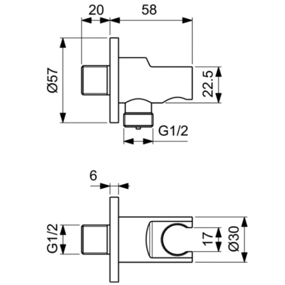 • BC807AA IDEALRAIN Держатель с подключением душевой лейки 1/2", цилиндрический дизайн, металлический с пластиковым вкладышем, с обратным клапаном;