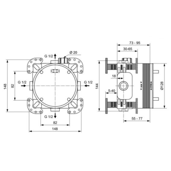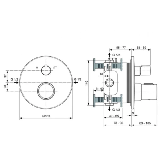 • A5814AA Ceratherm Т100 Встраиваемый индивидуальный термостатический смеситель для ванны/душа Комплект №2 (функциональный комплект и накладка для настенного монтажа)