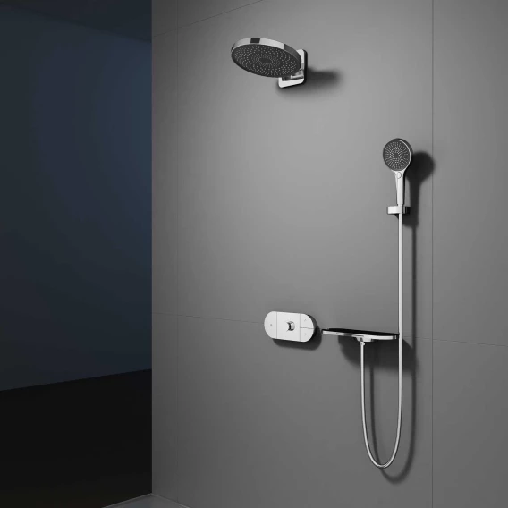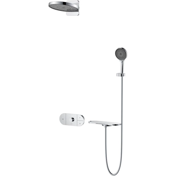 Душевой шланг, Душевая лейка, Держатель для душевой лейки, Полочка, Верхний душ, Излив, Скрытая монтажная часть, Кронштейн, Термостат