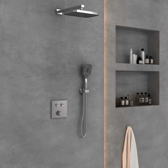 Душевой шланг, Душевая лейка, Подключение для душевого шланга с держателем, Верхний душ, Скрытая монтажная часть, Смеситель, Кронштейн