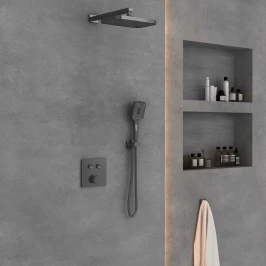 Душевой шланг, Душевая лейка, Подключение для душевого шланга с держателем, Верхний душ, Скрытая монтажная часть, Смеситель, Кронштейн