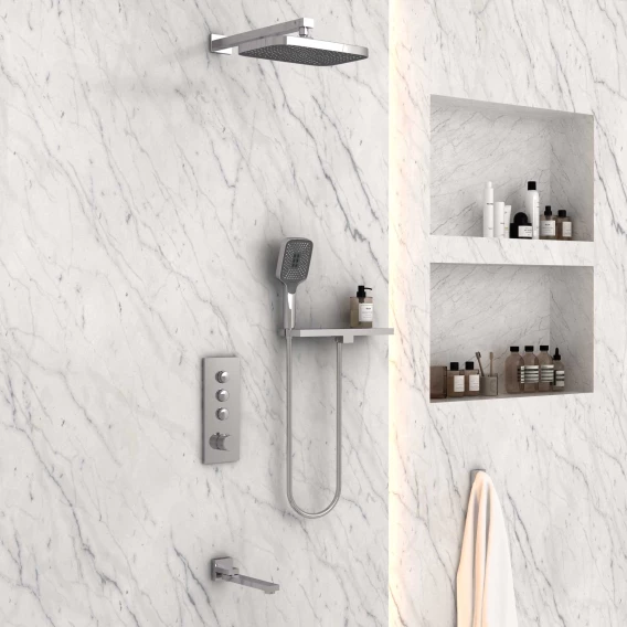 Аэратор, Душевой шланг, Душевая лейка, Подключение для душевого шланга с держателем, Полочка, Верхний душ, Излив, Скрытая монтажная часть, Кронштейн, Термостат
