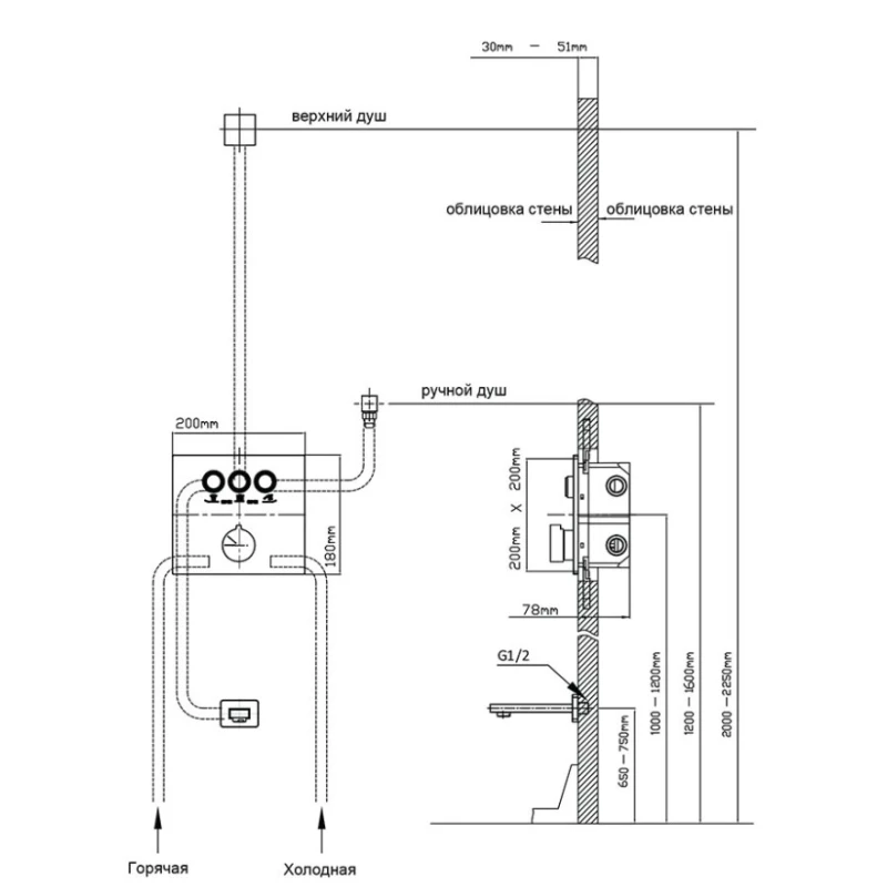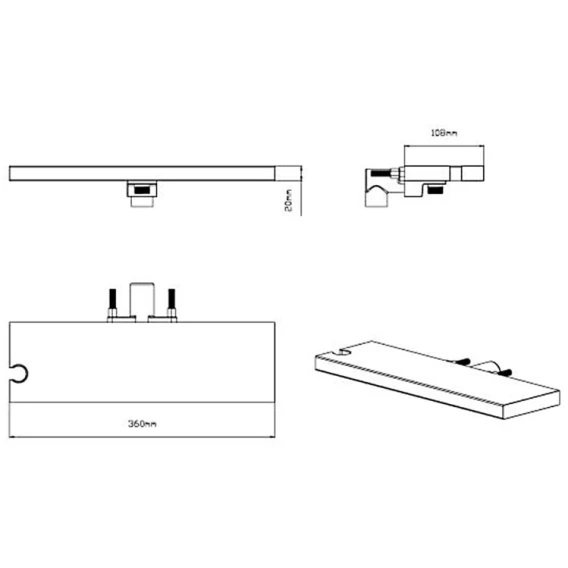 Аэратор, Душевой шланг, Душевая лейка, Подключение для душевого шланга с держателем, Полочка, Верхний душ, Излив, Скрытая монтажная часть, Кронштейн, Термостат
